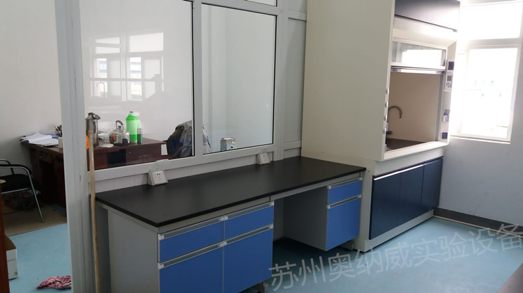 常熟三某化工企業2017年與奧納威簽訂鋼木實驗臺和通風柜及其他實驗室設備現場安裝圖片如下: 鋼木中央臺空間安排合適,節約空間使房間整體看起來更有整體感 拐角鋼木實驗臺切邊非常合理,一點也可以違和感 另外一個房間的邊臺和全鋼實驗臺 如果需要實驗臺 通風柜 通排風系統可以聯系奧納威:13862123624 0512-66566548