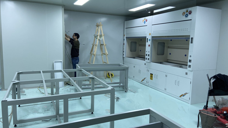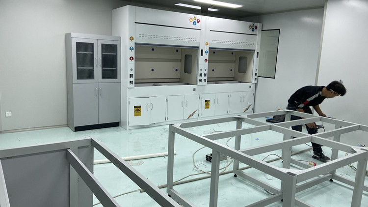 這邊是另外一個房間的通風(fēng)柜和鋼木實(shí)驗(yàn)臺再安裝,由于現(xiàn)場安裝圖片很多,只能發(fā)部分給客戶參考